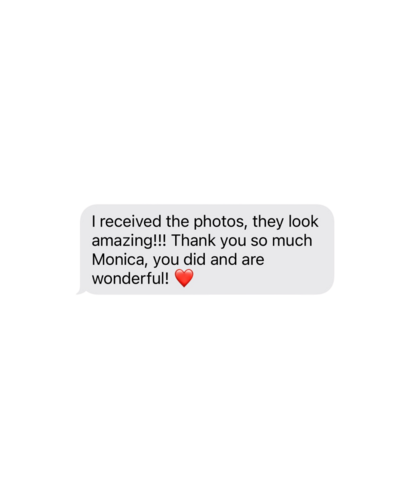 I cannot say enough amazing things about Monica ! She communicated with us for weeks before our wedding and had absolutely everything planned to the last detail! She made our day extra special with all her patience with our big family and the pictures came out absolutely amazing!! Everything was so beautiful. I recommend her 1000% !!